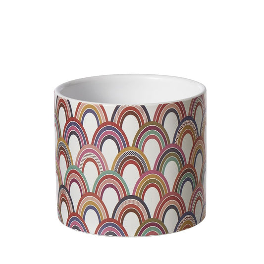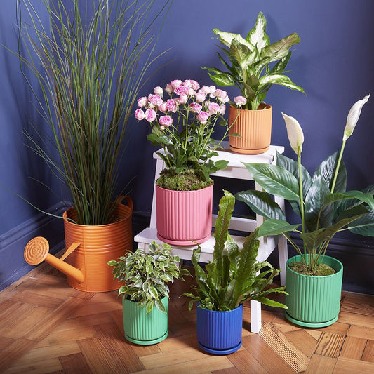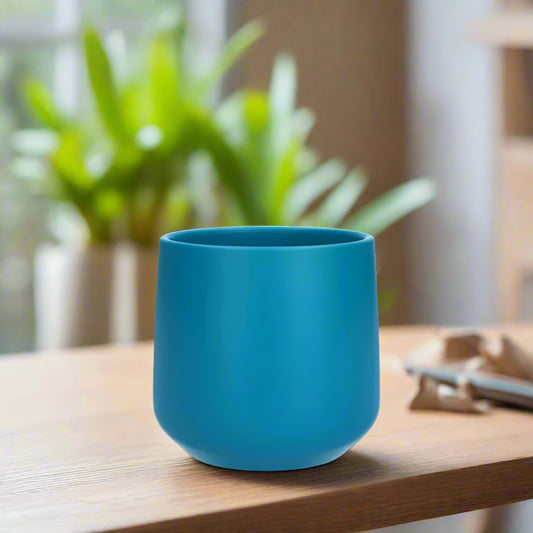 Ceramic Ridged Pot With Saucer - Marino Blue