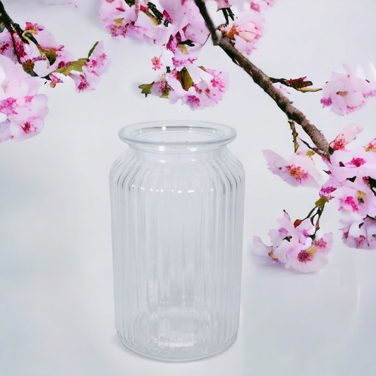 Clear Ribbed Glass Jar Vase (18.5 cm)