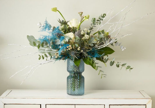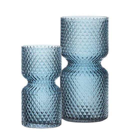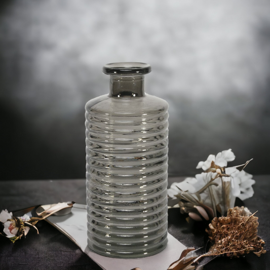 Horizontal Ribbed Glass Bottle Vase - Grey