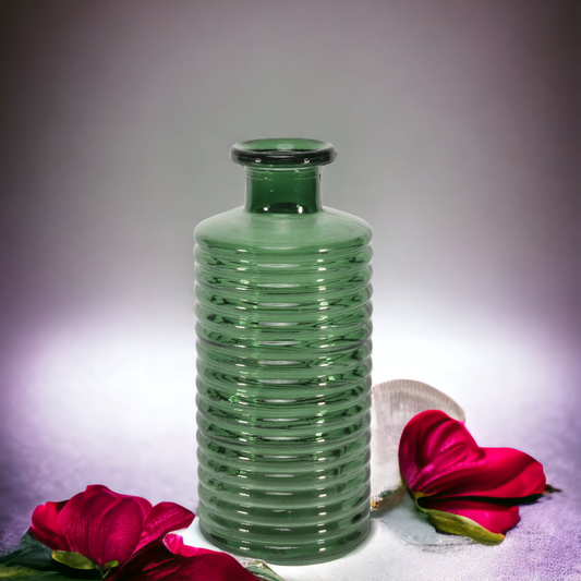Horizontal Ribbed Glass Bottle Vase - Green