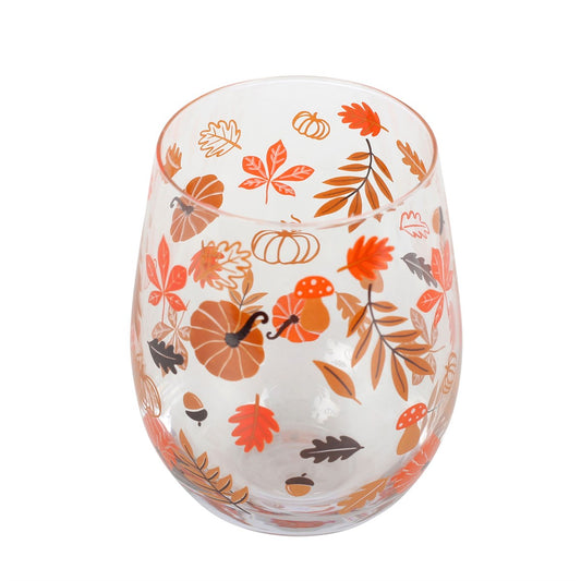 Autumn Leaves and Pumpkins Stemless Glass