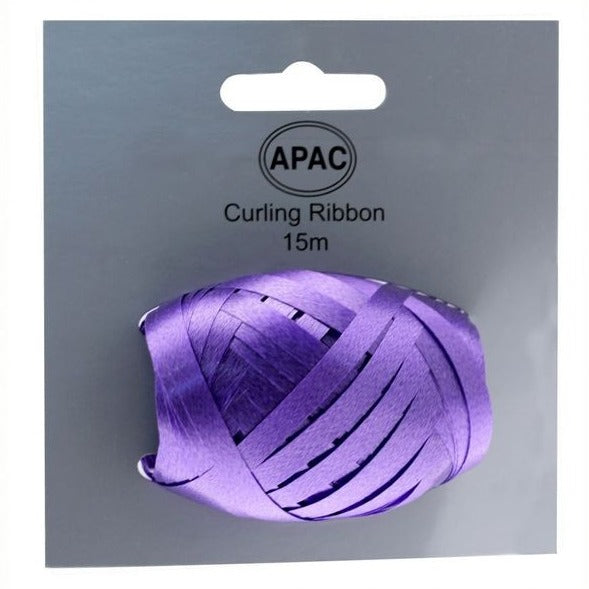 A 15m cop of Purple curling ribbon. Easy to curl, great for dressing up gifts, balloons or floral arrangements. Cut the ribbon to the length required, use a pair for scissors and run along the side of the ribbon for a perfect curl