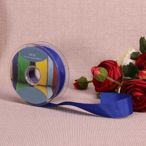 A roll of Royal Blue grosgrain ribbon. Grosgrain ribbon features a ribbed effect along the length of the ribbon and is perfect for gifts, promotional items and of course flower packaging. Grosgrain ribbon is easy to tie and bow.