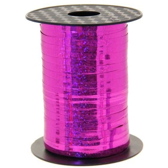 A 500m roll of Cerise Holographic curling ribbon. Easy to curl, great for dressing up gifts, balloons or floral arrangements. Cut the ribbon to the length required, use a pair for scissors and run along the side of the ribbon for a perfect curl