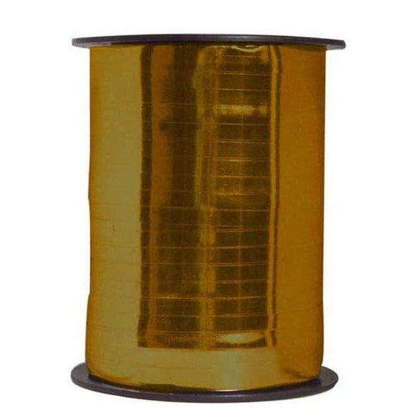 A 500m roll of Metallic Gold curling ribbon. Easy to curl, great for dressing up gifts, balloons or floral arrangements. Cut the ribbon to the length required, use a pair for scissors and run along the side of the ribbon for a perfect curl