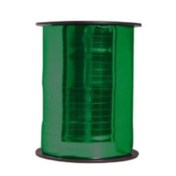 A 500m roll of Metallic Green curling ribbon. Easy to curl, great for dressing up gifts, balloons or floral arrangements. Cut the ribbon to the length required, use a pair for scissors and run along the side of the ribbon for a perfect curl