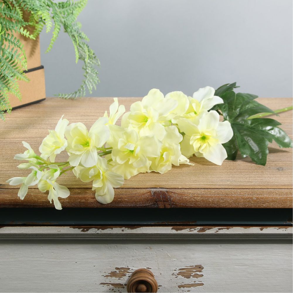 This yellow Arundel silk Delphinium stem will make a great addition to any floral arrangement and flower display. They have a very realistic appearance and as they're made of silk they will never wilt, keeping your displays looking fresh forever.