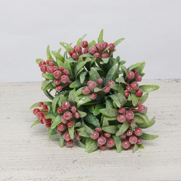 This artificial frosted berry bunch spray adds a natural touch to any wreath, arrangement, or vase. The artfully arranged red berries and realistic green foliage create a stunning look for your home or event decor. Brighten up any space with this beautiful and versatile spray.