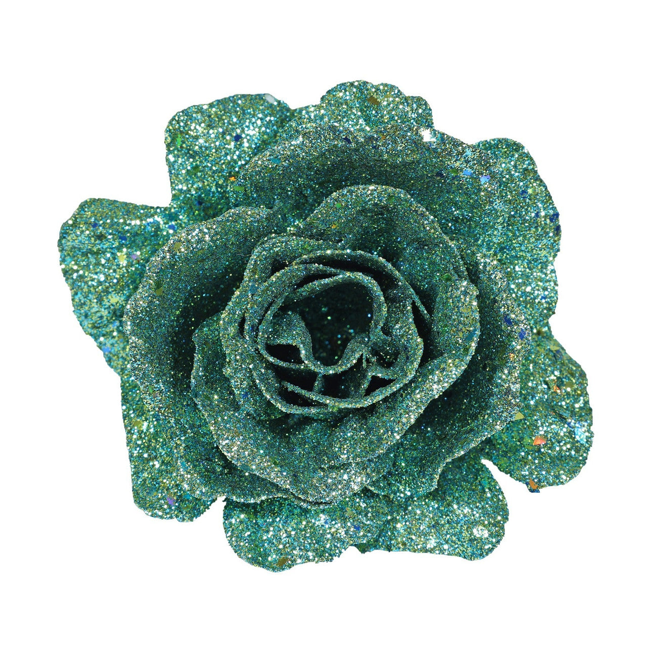 This artificial glitter rose head with clip is perfect for adding a touch of sparkle to your craft displays and projects. The realistic design and glitter detailing make it a beautiful and professional addition to fabric or backdrops. Enhance your creations with this versatile and eye-catching rose head.