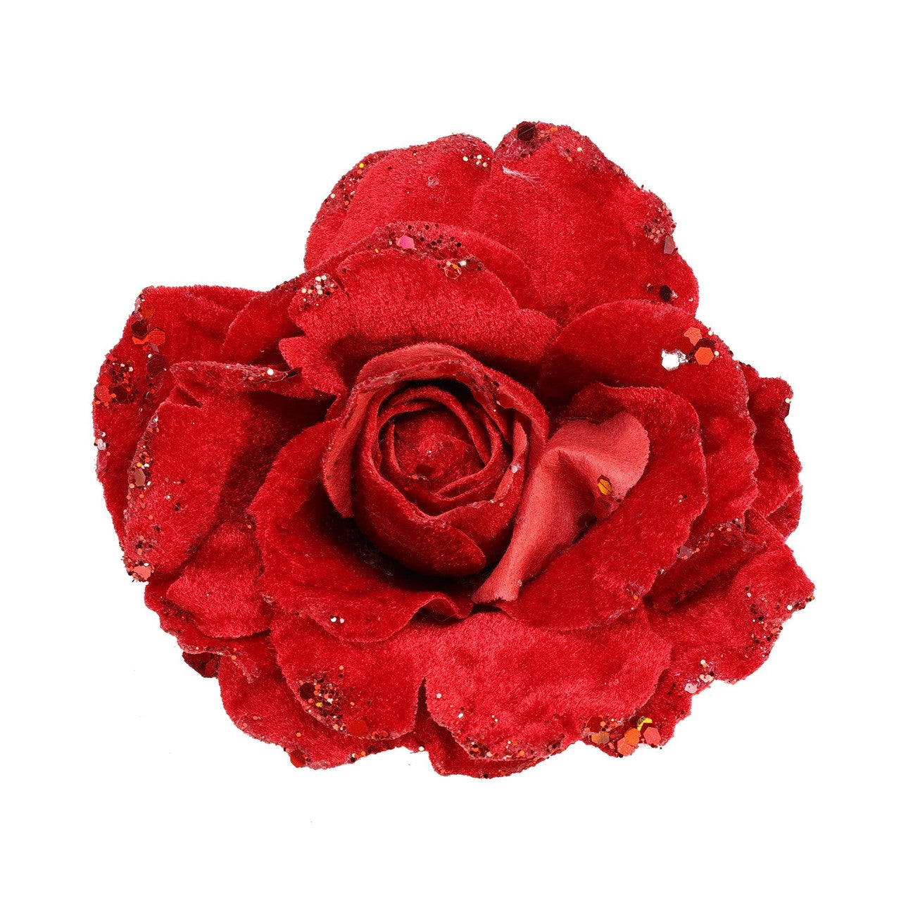 Artificial Velvet Rose with Glitter Edges and Clip - Red