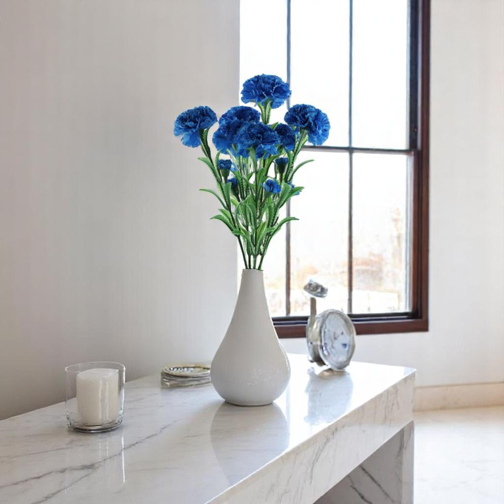 This artificial royal blue carnation bunch offers a stunning and realistic floral arrangement that enhances any space with its vibrant colour and lifelike appearance. Crafted from high-quality materials, this durable bunch requires no maintenance, making it an ideal choice for both home and office decor. Its elegant hue adds a touch of sophistication, while the intricate detailing of the carnations ensures a timeless aesthetic that complements various interior styles. Perfect for year-round display, this artificial floral arrangement brings the beauty of nature indoors without the hassle of upkeep.