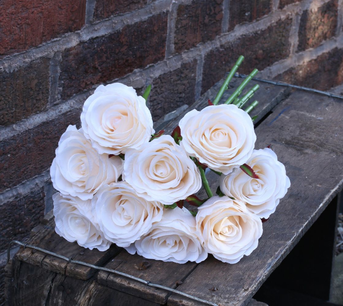 Enhance your floral arrangements with this Cream Artificial Silk Rose Bundle. Crafted with intricate details, these roses have a realistic appearance. Perfect for filling arrangements or displaying alone, they make a lasting centrepiece. Give the gift of everlasting beauty with these exquisite roses.