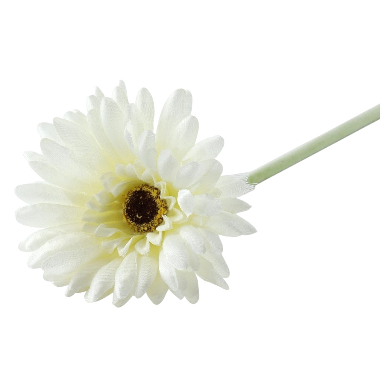 This artificial white gerbera features crisp, bright white petals that add a fresh and elegant touch to any arrangement. Its realistic bloom is perfect for adding a lively touch to weddings, events, or home decor. With minimal upkeep and enduring beauty, this flower offers a vibrant, lasting accent to any space.