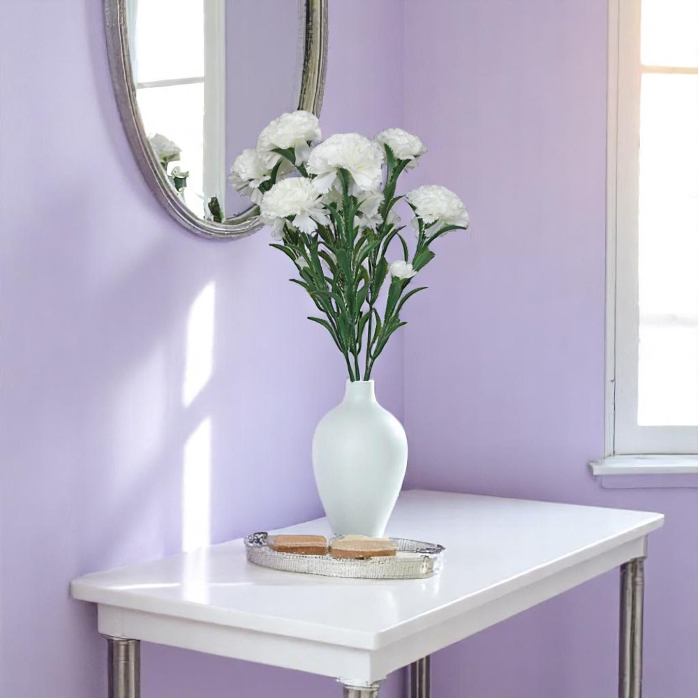 This artificial white carnation bunch offers a stunning and realistic floral arrangement that enhances any space with its pure colour and lifelike appearance. Crafted from high-quality materials, this durable bunch requires no maintenance, making it an ideal choice for both home and office decor. Its elegant hue adds a touch of sophistication, while the intricate detailing of the carnations ensures a timeless aesthetic that complements various interior styles. Perfect for year-round display, this artificial floral arrangement brings the beauty of nature indoors without the hassle of upkeep.
