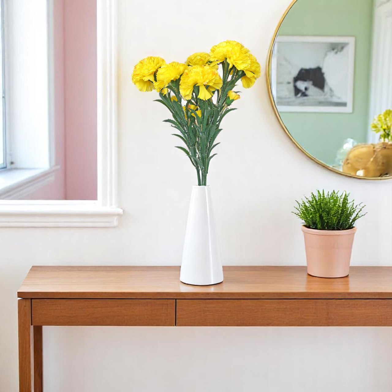 This artificial yellow carnation bunch offers a stunning and realistic floral arrangement that enhances any space with its vibrant colour and lifelike appearance. Crafted from high-quality materials, this durable bunch requires no maintenance, making it an ideal choice for both home and office decor. Its elegant hue adds a touch of sophistication, while the intricate detailing of the carnations ensures a timeless aesthetic that complements various interior styles. Perfect for year-round display, this artificial floral arrangement brings the beauty of nature indoors without the hassle of upkeep.
