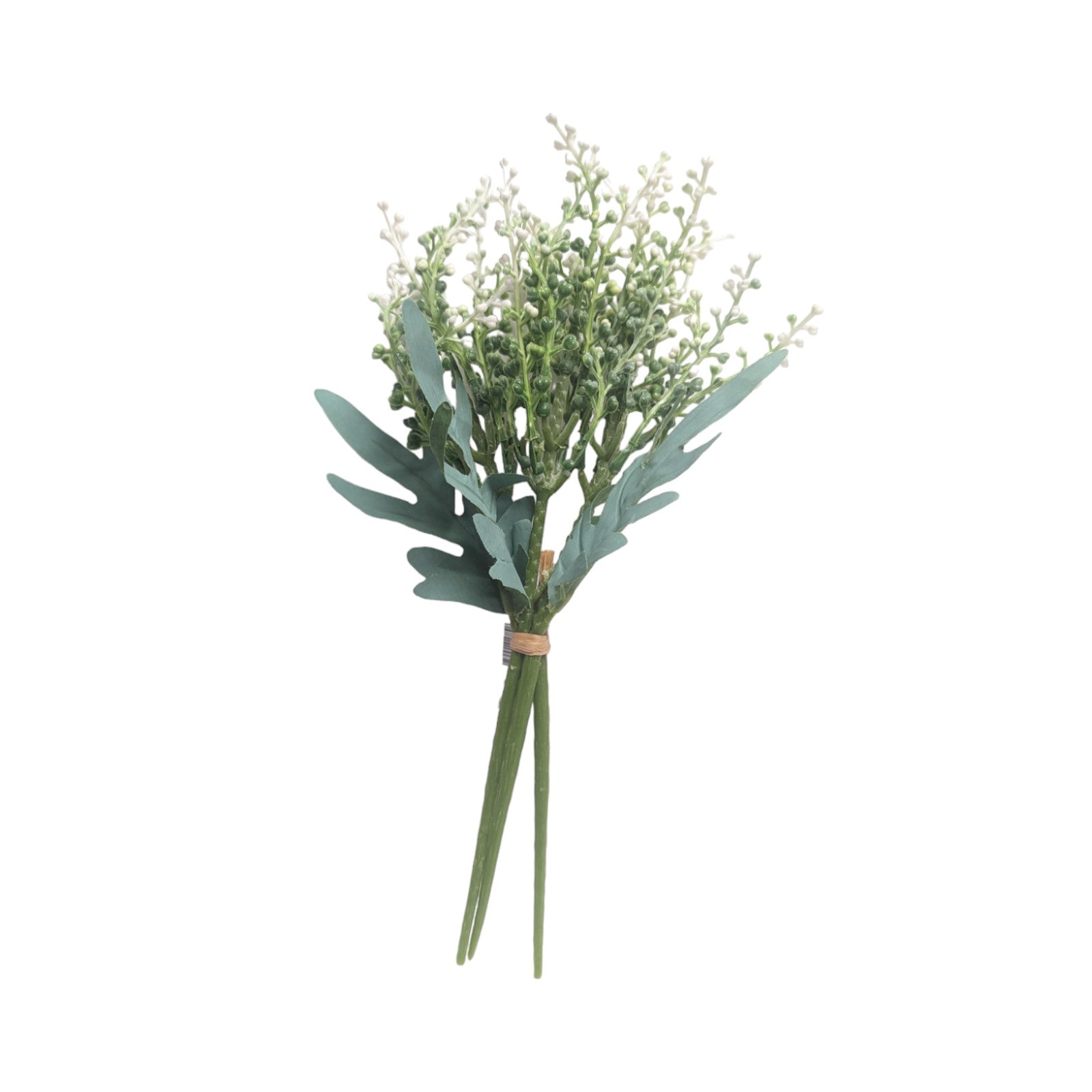 Add a touch of warmth and colour to any home interior with this Artificial Ivory Astilbe Bundle. Featuring lifelike heads with foliage, this plant is perfect for displaying in a vase or using as a filler in a bouquet. This is tied together in a hand tied ribbon making it a lovely gift. Enjoy the beauty of this ivory astilbe bundle without the maintenance.