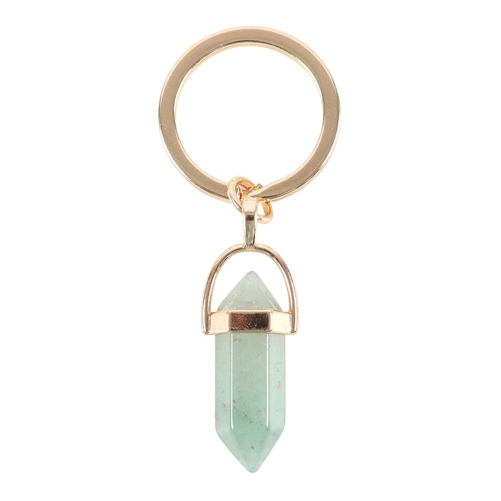 Carry the positive energy of crystal healing on-the-go with this crystal keyring. Featuring an aventurine crystal point known for promoting luck and prosperity, attached to a durable gold-tone keyring.