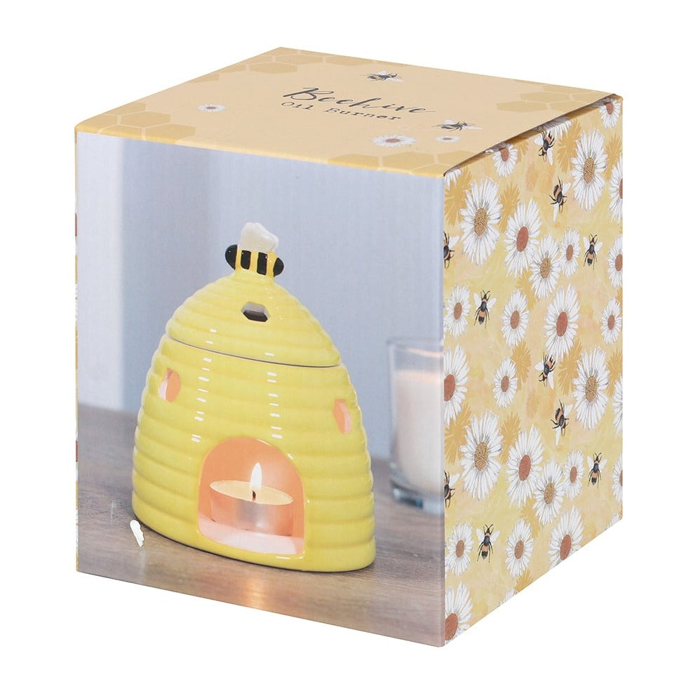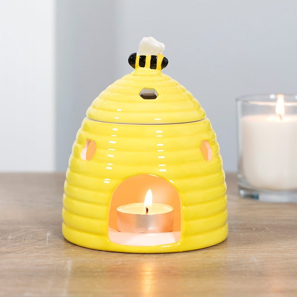 This ceramic oil burner and wax warmer comes in the shape of an adorable yellow beehive with a sweet bee on the lid. Honeycomb-shaped cutouts finish off this unique style. Compatible with both fragrance oils and wax melts. Do not use more than one tealight and remove lid when in use.