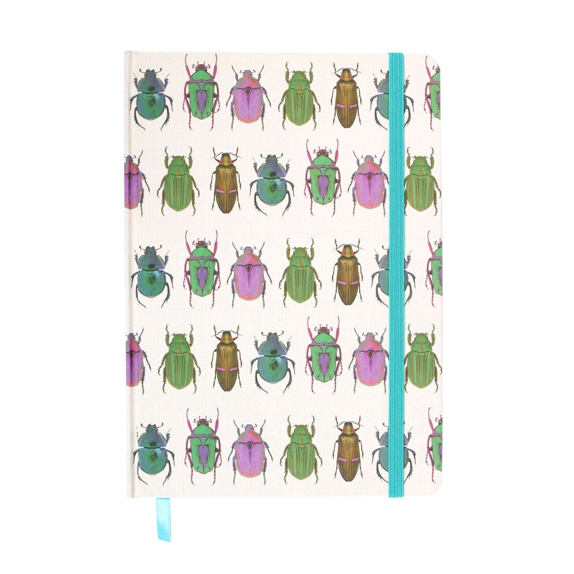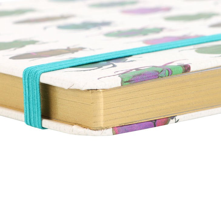 Whether used for notes, lists, or journalism, this beautiful A5 notebook will elevate your desktop with a captivating, colourful beetle design, accented by gold foil pages and a turquoise ribbon marker. Includes 100 sheets / 200 lined pages.