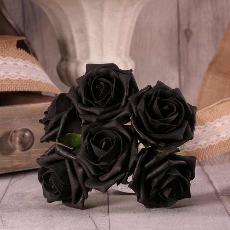 Elevate your event decor with this elegant bundle of black 6 foam tea roses. Each rose can be used separately or kept together for a stunning floral arrangement. Bring a realistic touch to weddings, centrepieces, or any project with these versatile flowers.