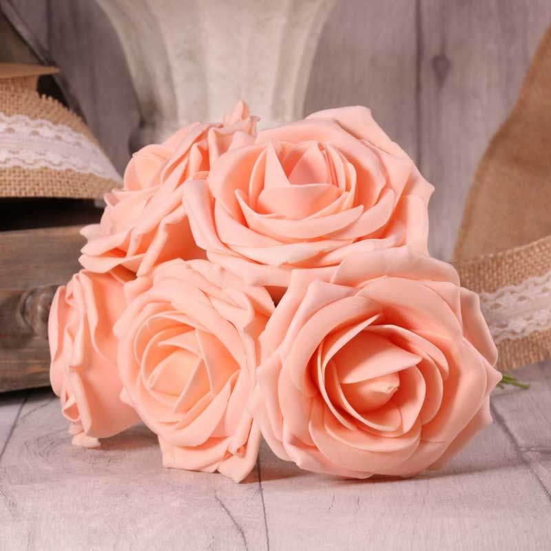 Elevate your event decor with this elegant bundle of soft peach 5 foam tea roses. Each rose can be used separately or kept together for a stunning floral arrangement. Bring a realistic touch to weddings, centrepieces, or any project with these versatile flowers.