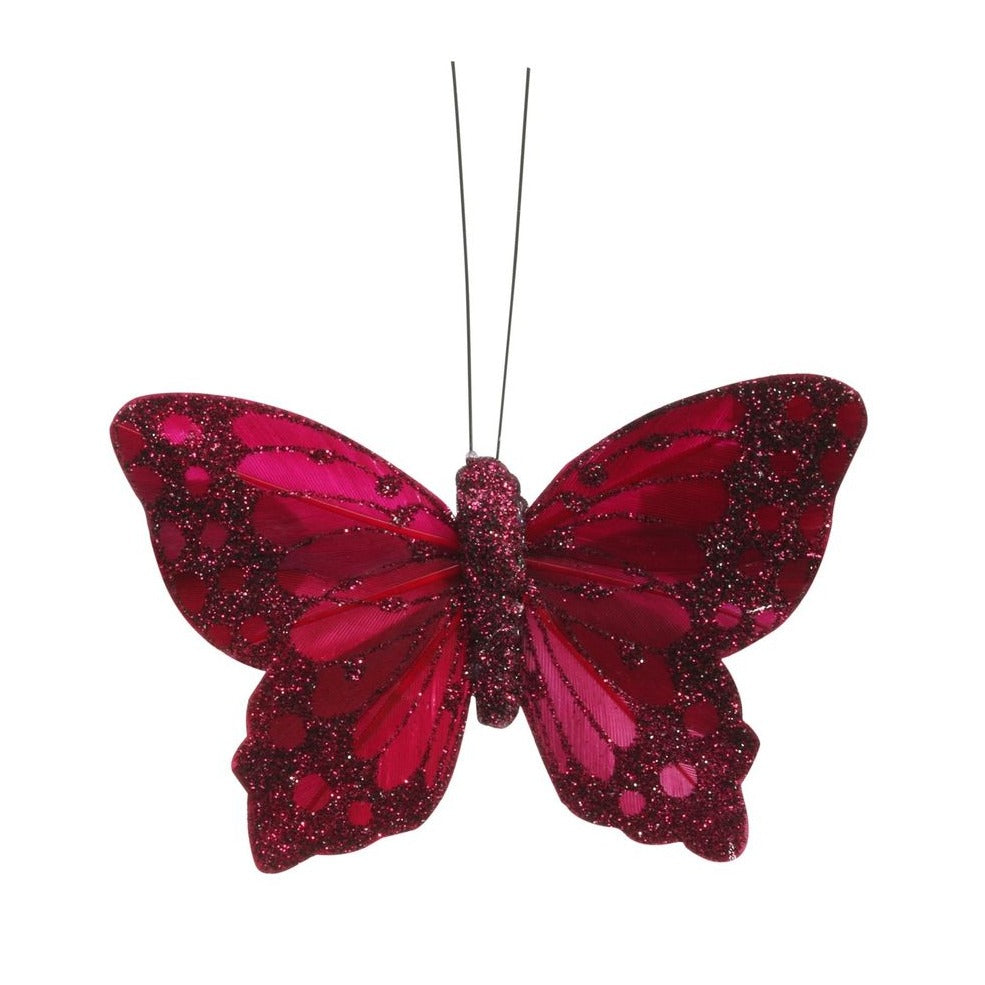 Burgundy Feather & Glitter Butterfly (Pack of 12) 9 cm