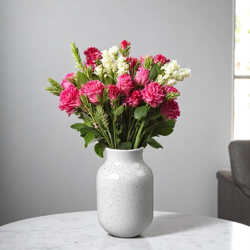 Ceramic speckled vase with its stylish pattern adds a touch of sophistication and charm to any room. Not only is it visually appealing, but it is also a versatile piece that can be used for flowers, plants, or as a standalone statement piece.
