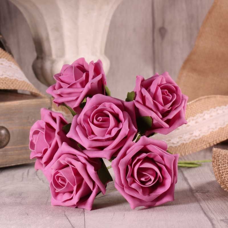 Bunch of 6 Foam Open Tea Roses - Cerise