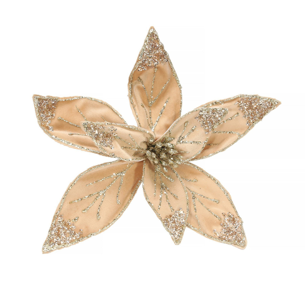 Champagne Velvet And Glitter Poinsettia Organza with Clip