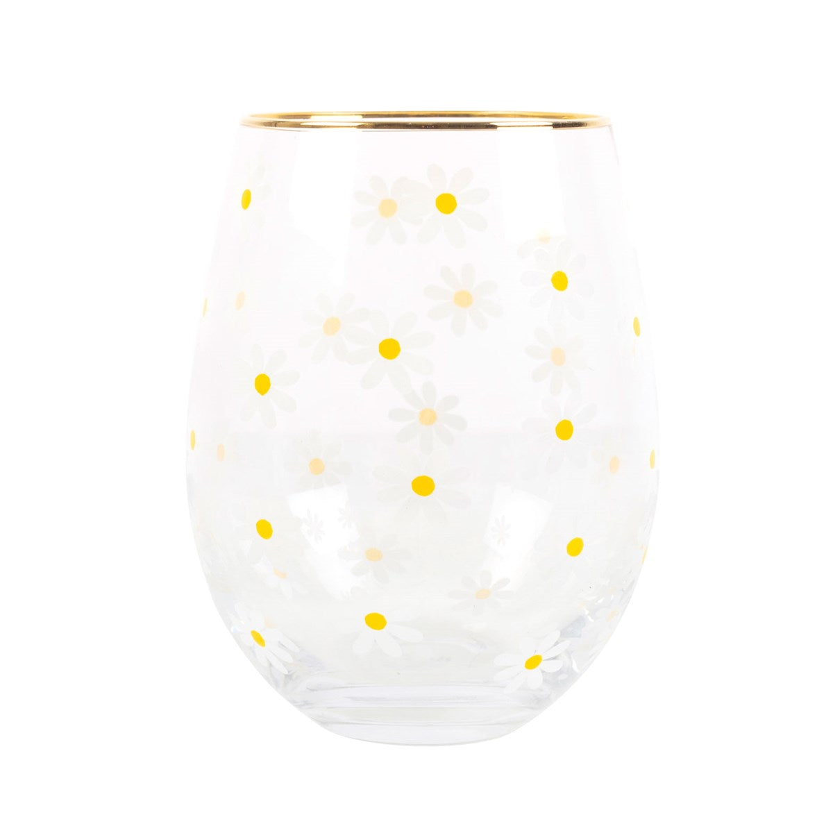 Cheerful and understated, this charming stemless glass features an all-over daisy print and a gold-tone rim. Great for springtime and happy gatherings in the sunshine, this glass makes a great gift for all occasions.
