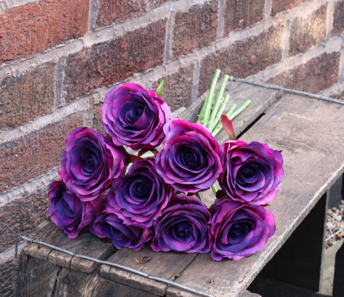 Dark Purple Artificial Silk Rose Bundle