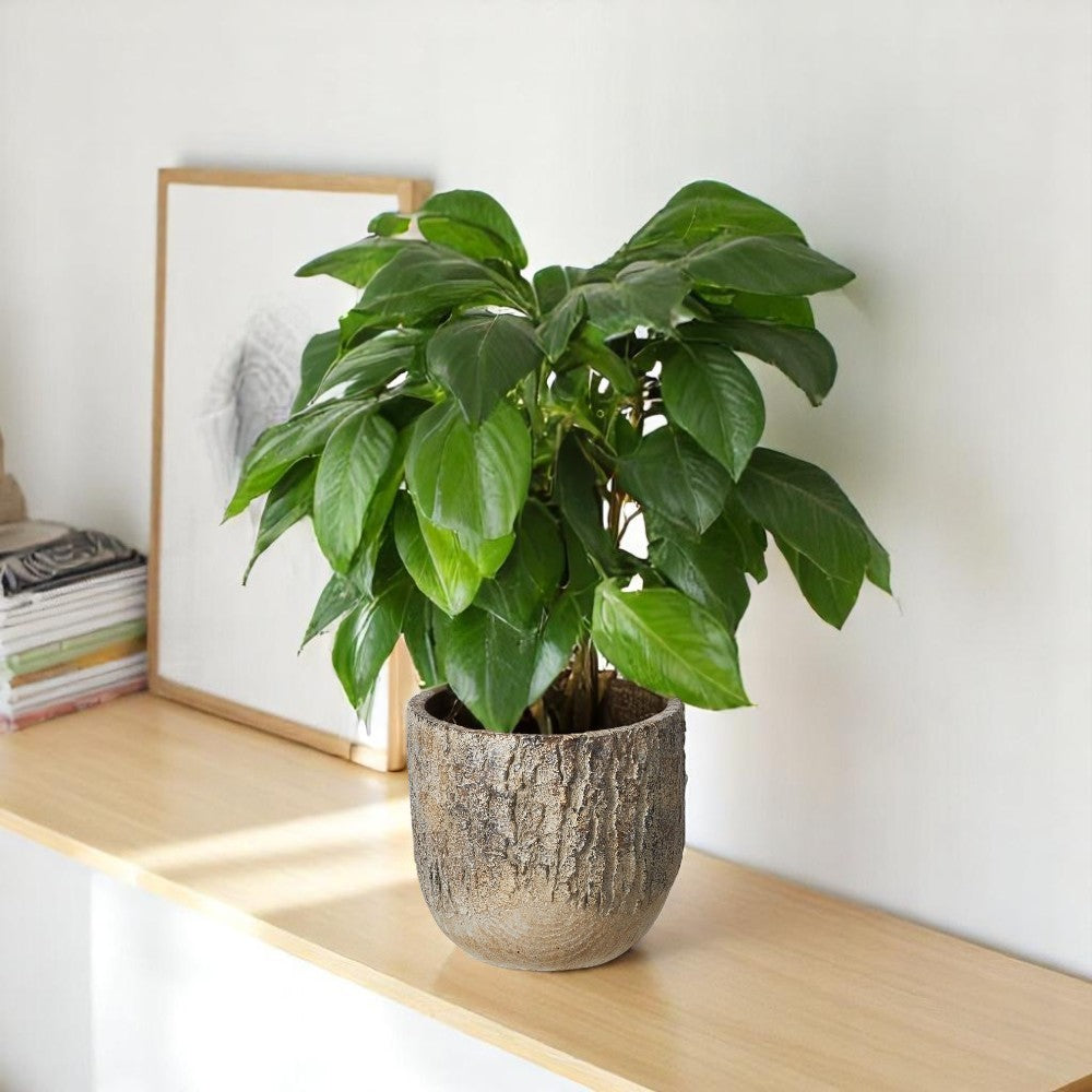 Imagine your favourite ferns, trailing ivy, vibrant perennials, or even a miniature evergreen nestled within its embrace, creating a stunning natural display. The detailed yew tree bark effect makes this planter a striking focal point, whether gracing your patio, nestled within a garden border to add a touch of ancient charm, or making a unique statement indoors.