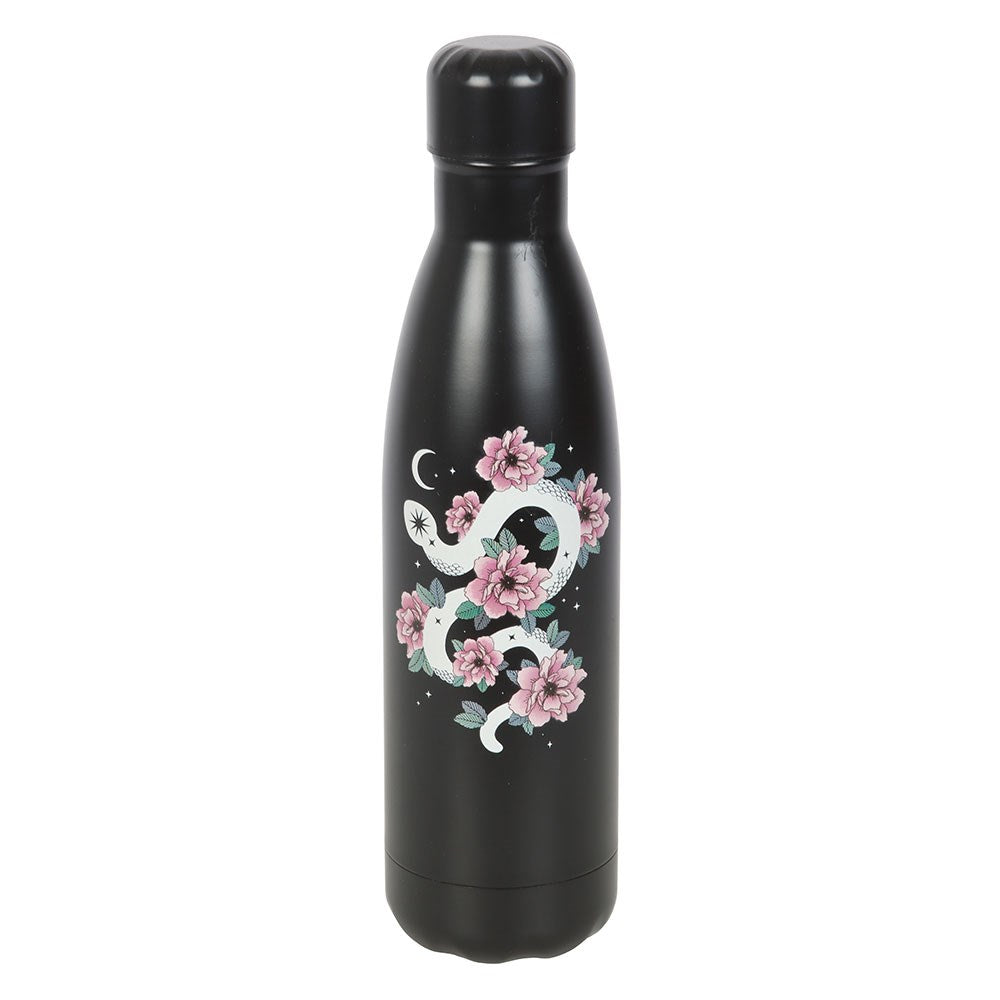 Stay hydrated with this dark and elegant water bottle. With a beautiful floral snake design, you will feel fresh and renewed with every sip! Features a convenient screw-top lid to prevent accidental spills.
