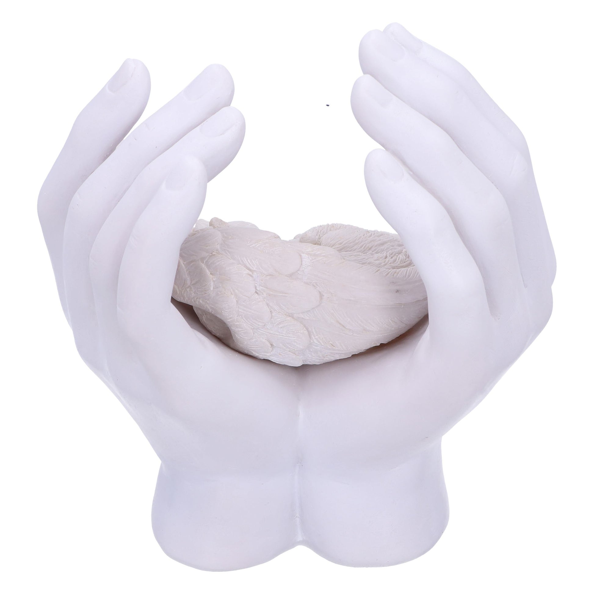 Capture the essence of serenity with this Forever Feline Ornament. Two graceful white hands gently cradle the sleeping angel fairy, evoking a sense of tranquil beauty. The delicate details and tender scene create a captivating aura of peace and wonder. Cast in the finest resin before being expertly hand-painted, this figurine is certain to bring a touch of celestial harmony to your collection.