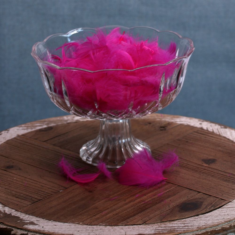 Add a touch of glamour to your decorating or crafting projects with these fuchsia pink feathers. A 5g bag of beautiful Fuchsia Pink feathers can bring elegance to any event or special occasion. Perfect for providing a professional finish with a unique and stylish touch.