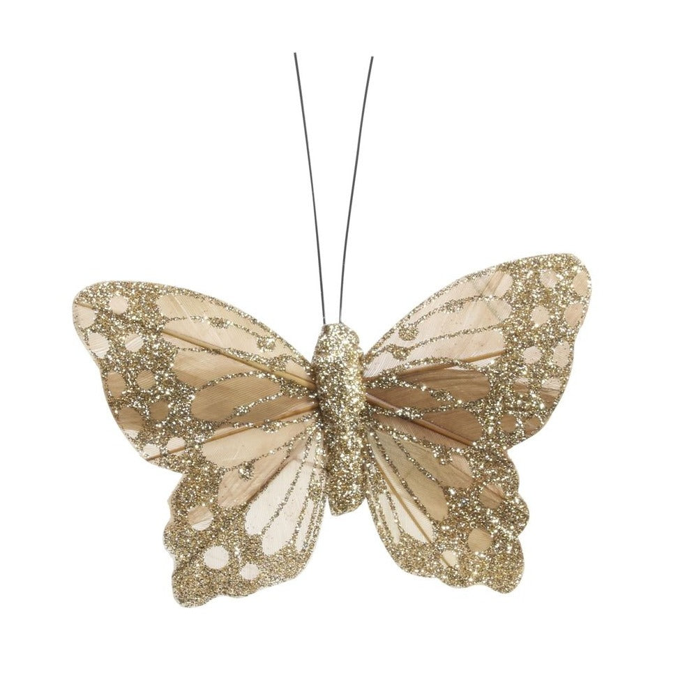 Gold Feather & Glitter Butterfly (Pack of 12)