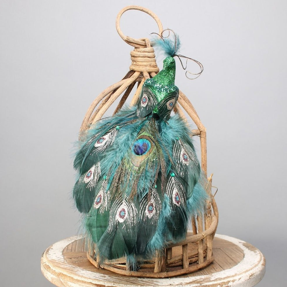 Add a touch of glamour to your crafts or decorations with this beautiful Peacock Bird. Crafted with feathers, glitter and a clip, this stunning accessory is perfect for adding a special touch to any project. Enjoy a professional-looking result with this high-quality decoration. Perfect for attaching to Christmas trees.