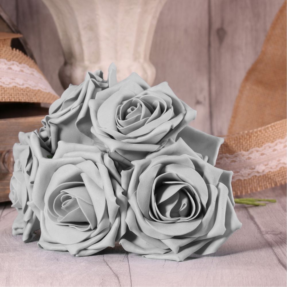 Elevate your event decor with this elegant bundle of grey 5 foam tea roses. Each rose can be used separately or kept together for a stunning floral arrangement. Bring a realistic touch to weddings, centrepieces, or any project with these versatile flowers.