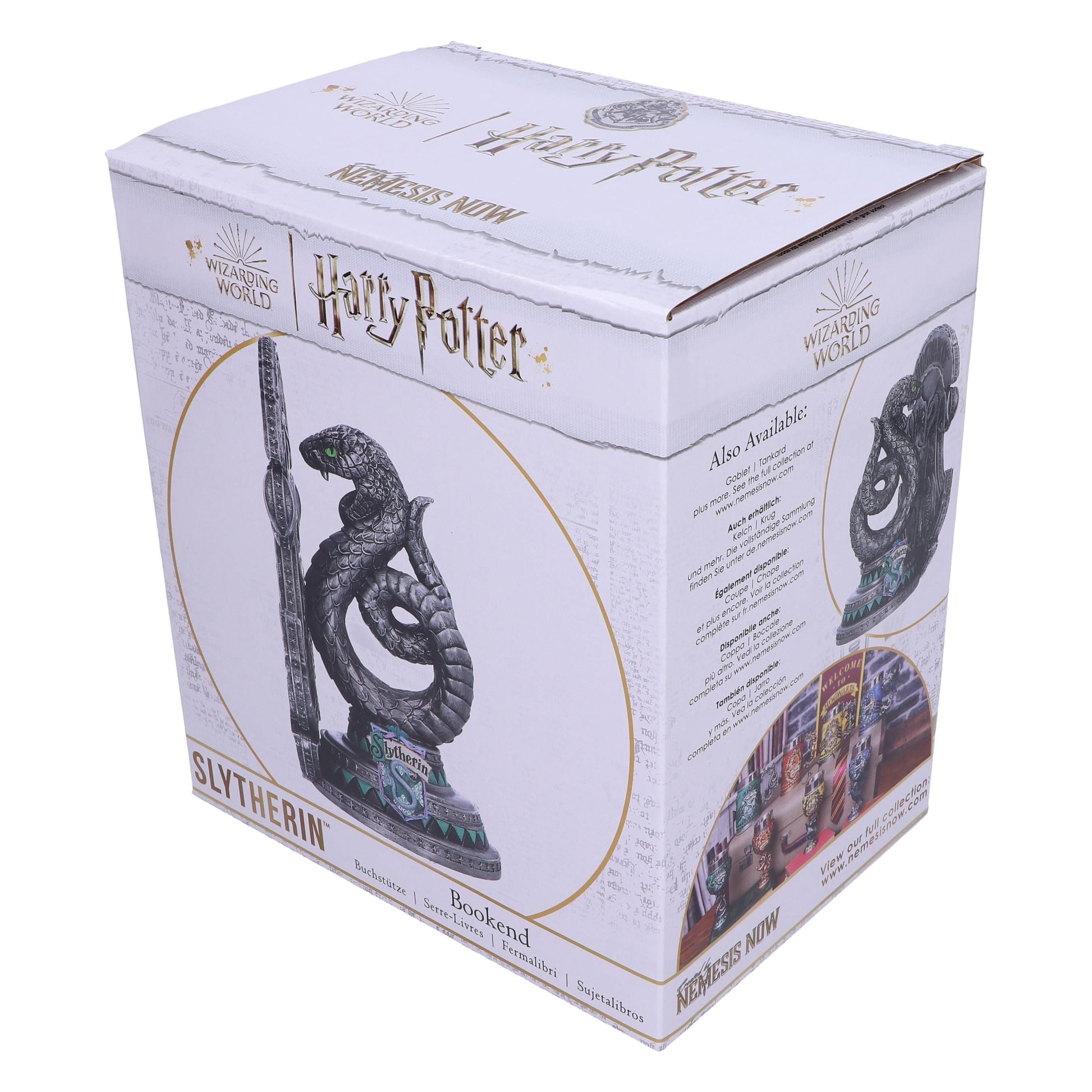 Magic is waiting for you with this officially licensed Harry Potter Slytherin bookend. Slytherin is one of the four houses at Hogwarts, whose members traits are cunning, ambition and pride. The symbolic animal of the house is a snake, which can be seen facing the Hogwarts crest as the main feature of the bookend, along with the house's emblem and colours of green and silver. This collectible bookend is the perfect addition to any wizarding collection and can be enjoyed by Witches, Wizards, and Muggles alike!