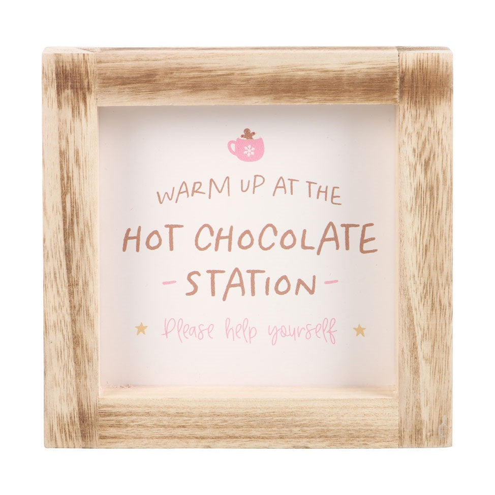 Set up heart warming hot chocolate stations for friends and family with this 'Hot Chocolate Station' wooden sign. Perfect for warming up after wintery walks or getting cosy to watch a timeless Christmas movie for family film night.