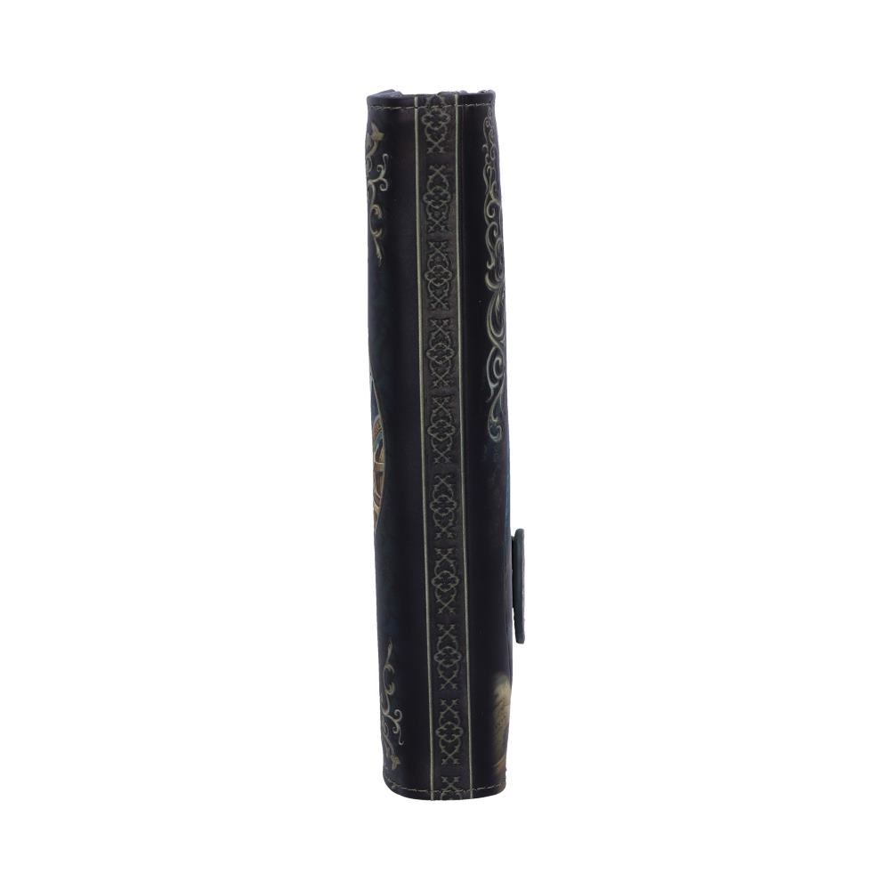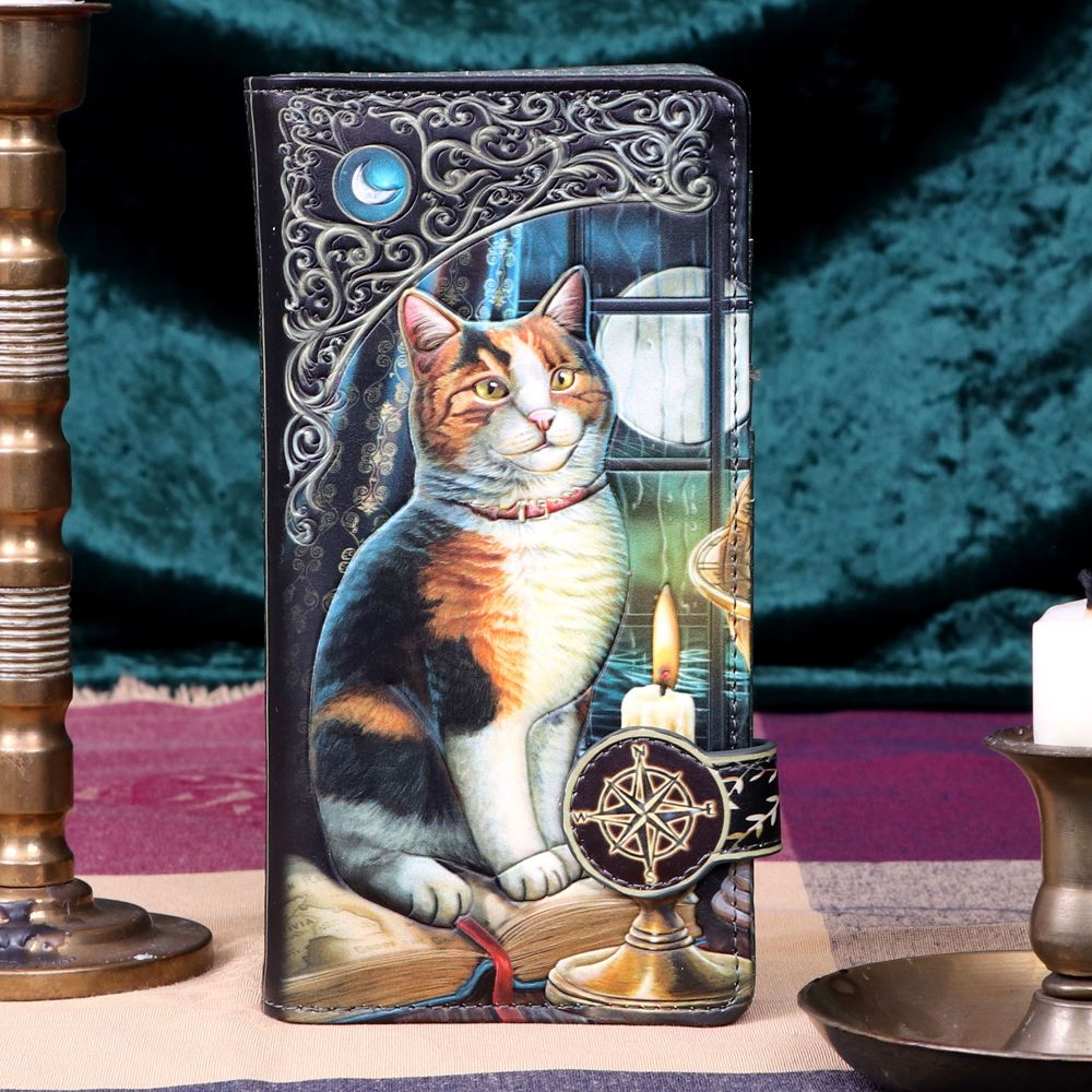 From the untamed, enchanted imagination of world-renowned artist Lisa Parker, this stylish and practical purse was created by alternative brand Nemesis Now. An inquisitive Calico feline sits atop an antiqued atlas, awaiting its next voyage. Through the window, the seas look treacherous but with the help of their armillary sphere and the bright glow of the moon, their journey should not be too perilous. The beautiful embossed detailing enhances the magic and creates a striking 3D effect while the large compartments make it a wonderfully practical piece.