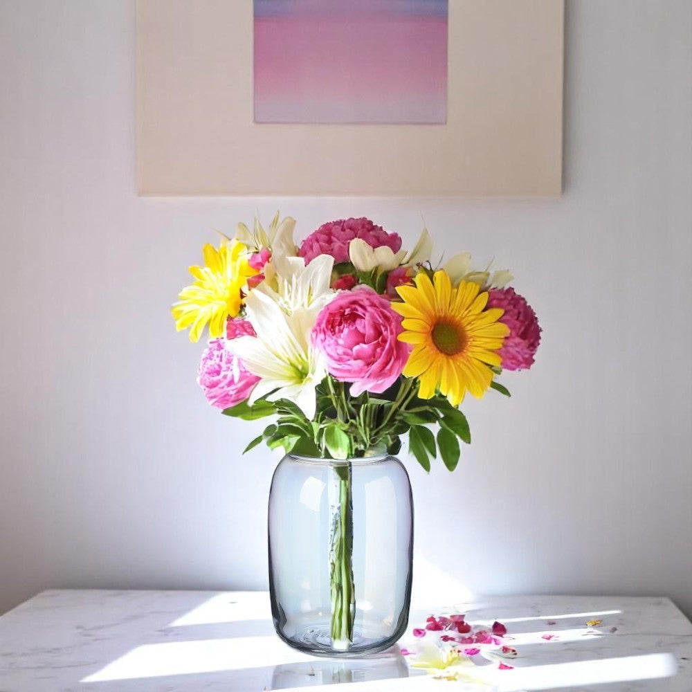Discover the ethereal beauty of this Glass Vase with a stunning Pearl Finish. This exquisite piece is designed to capture and reflect light, creating a soft, luminous glow that will instantly elevate any space. The delicate pearlescent sheen lends an air of timeless sophistication, making it a perfect vessel for your favourite fresh flowers, dried botanicals, or a captivating decorative object in its own right.
