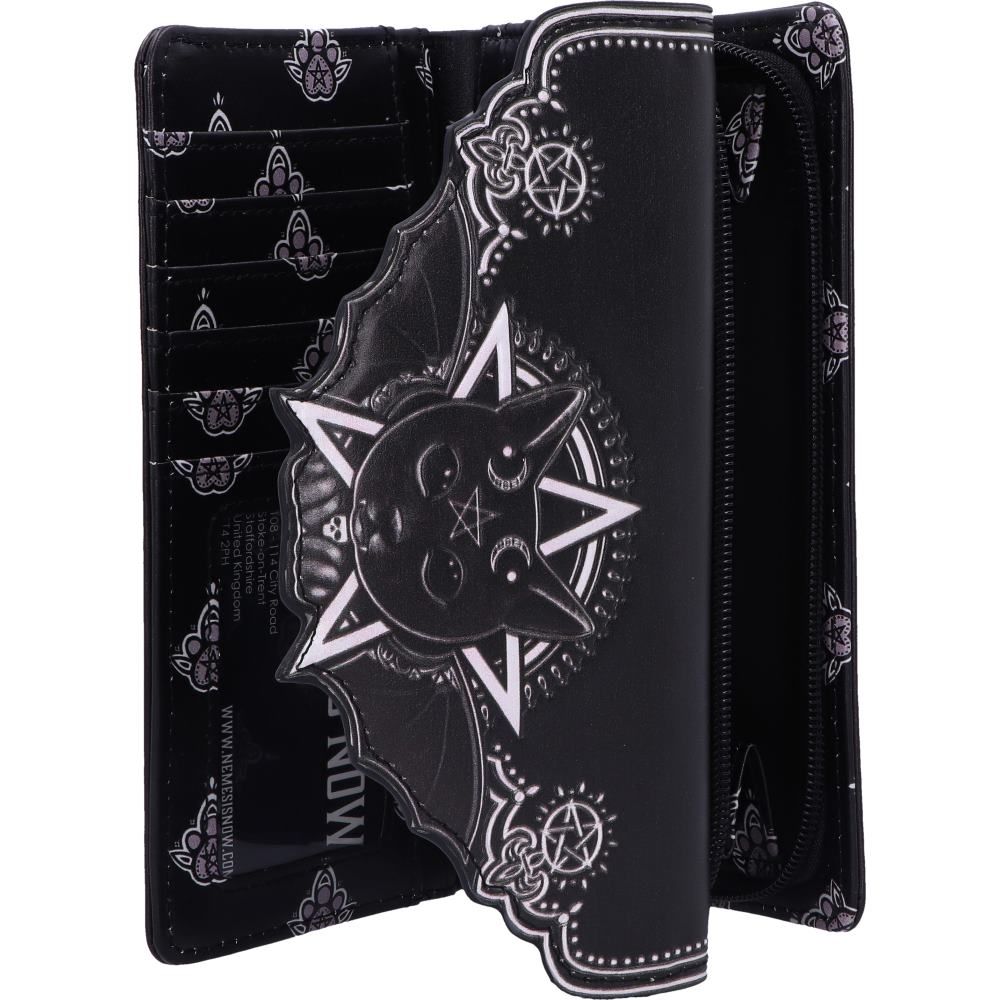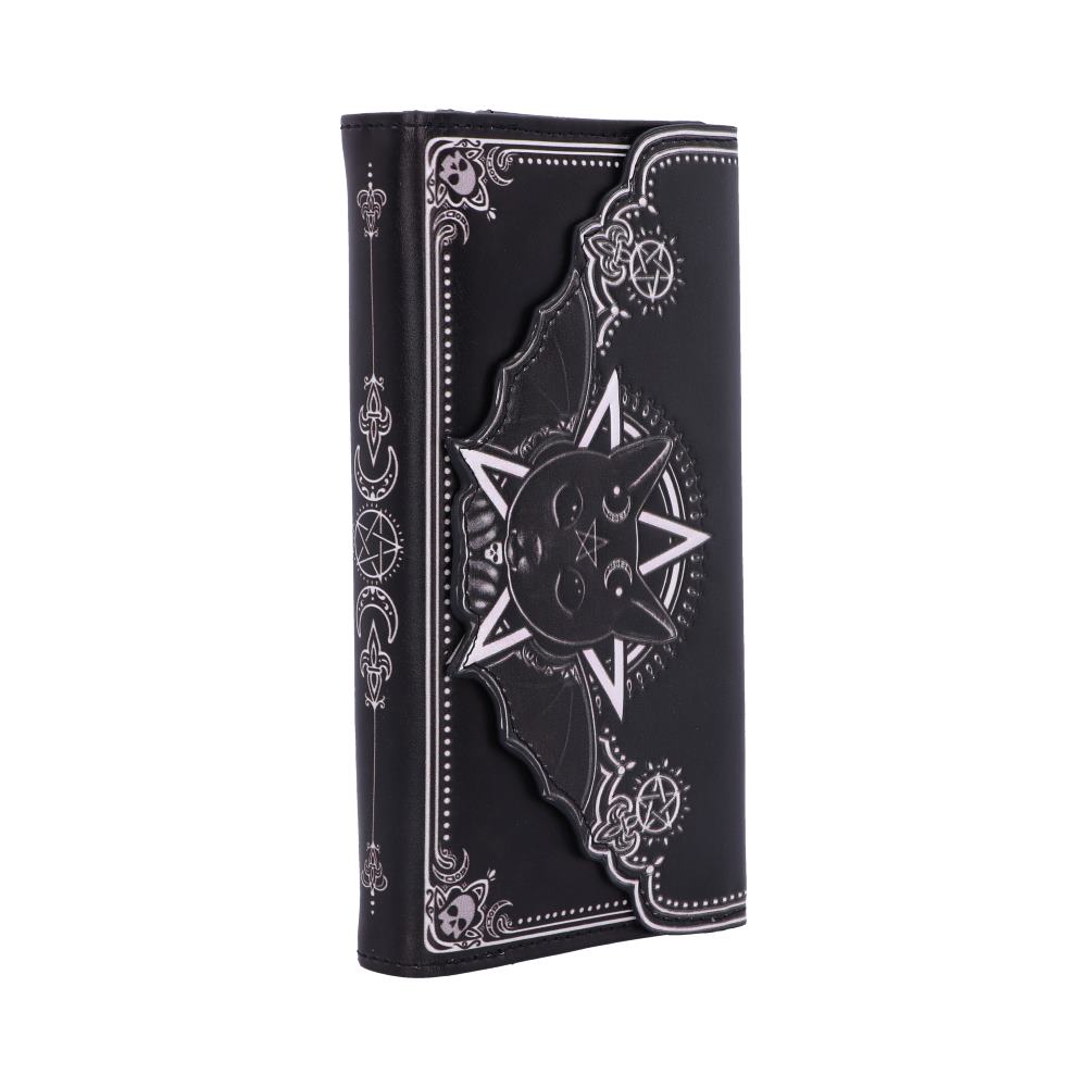 This Malpuss Embossed Purse is the union of good and evil and appears to be a vampire spirit, encapsulated by bat wings protruding from the cats back. Decorated in ornate silver detailing, this Malpuss Embossed Purse has multiple slots available for holding both your cards, cash and coins!