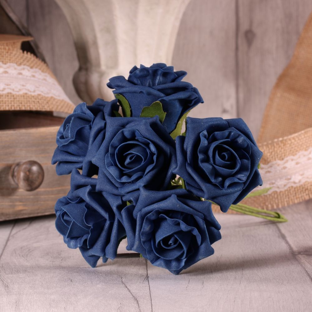 Bunch of 6 Foam Open Tea Roses - Navy Blue