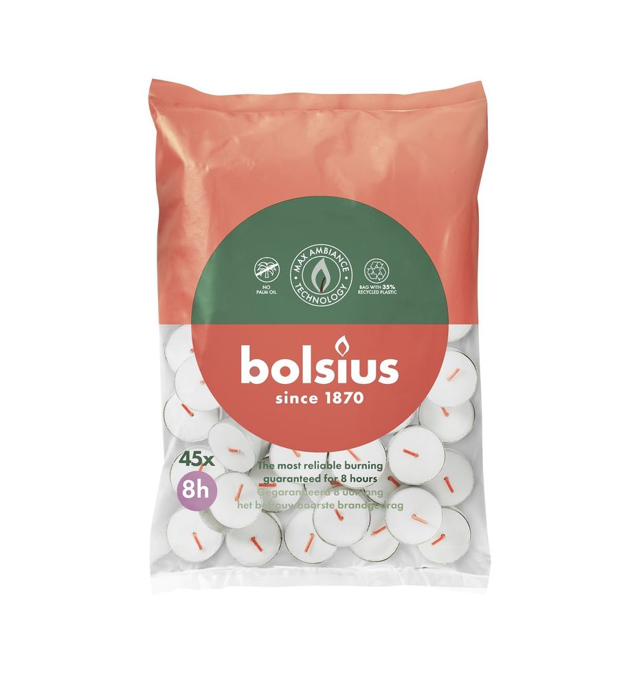 Pack of 45 Bolsius White Tealights - 8 Hour