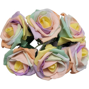 Bunch of 6 Foam Open Tea Roses - Pastel Rainbow