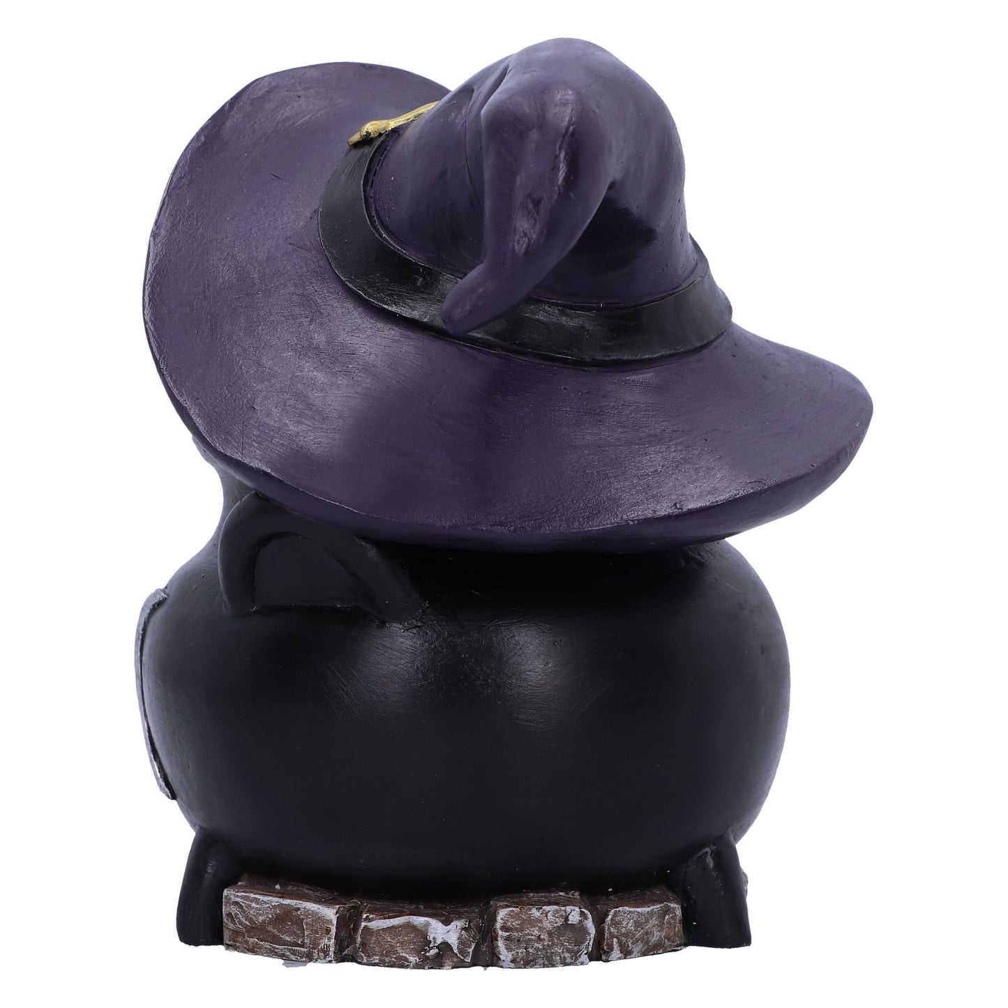 A curious cat's head emerges from a cauldron adorned with a silver pentagram, creating an enchanting tableau. Watch in awe as the cat's eyes come alive with LED magic, illuminating in captivating hues. Cast in the finest resin before being expertly hand-painted, this figurine is the perfect addition to any gothic of feline collection.