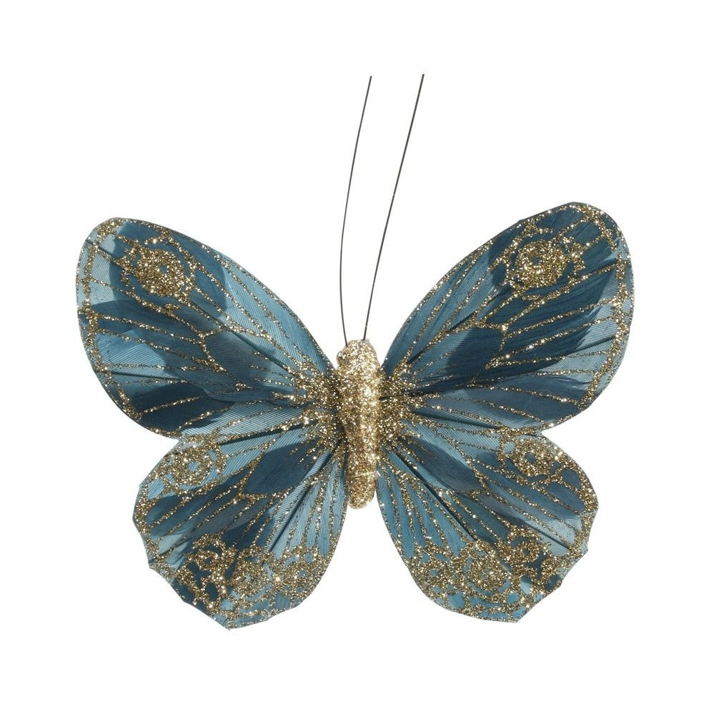 Petrol Green Feather & Glitter Butterfly 12 cm (Pack of 12)