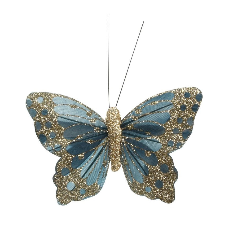 An eye-catching petrol green and gold butterfly with a clip for easy securement. Showcasing its lustrous wings and glittering body, this butterfly makes a great addition to a craft project or decoration.