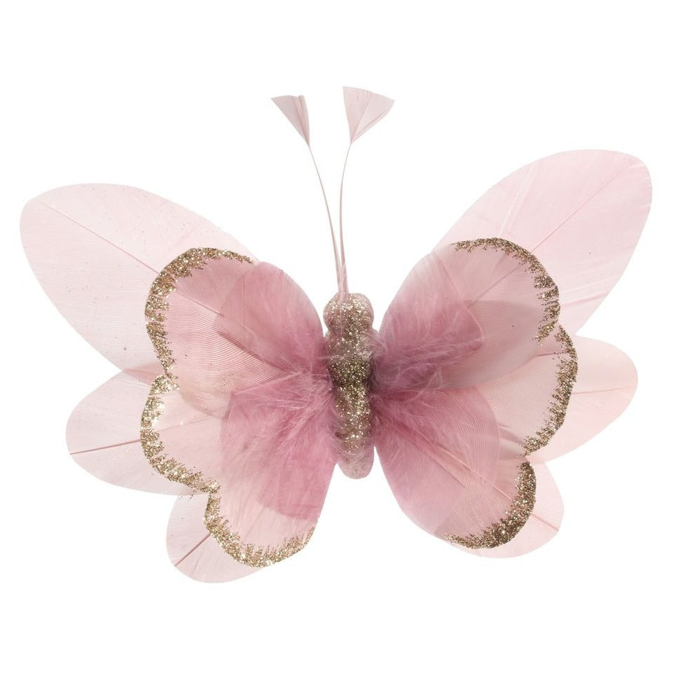 Pink Feather & Glitter Butterfly (Pack of 6)
